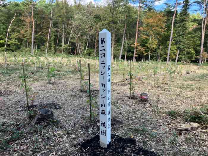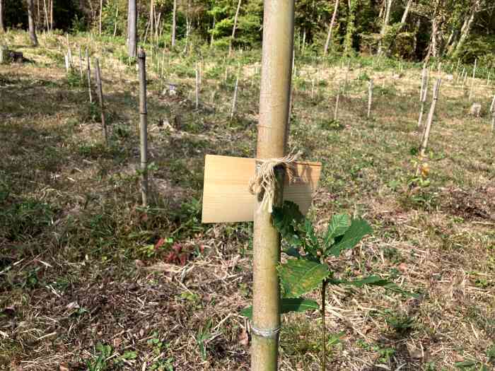 2025/10/11 株主様植樹会 ミズナラを50本植樹しました ミズナラ 植樹した苗木にメッセージを書きました。(アカマツ経木) 2025/10/11植樹頂きましたミズナラ50本の様子です。一部、シカの食害が確認されております。