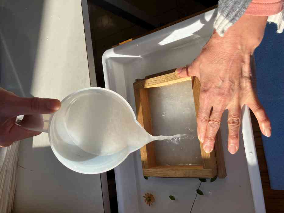 紙すき体験会 広葉樹(原料)をそそぎます。 葉をすきこみます はがき!完成です! 2025年最後の「にしごう紙すきサークル」を開催しました。今年も来場した方の「紙すき体験」をサポートいただきました。お世話になりました。2026年も何卒宜しくお願い申し上げます。